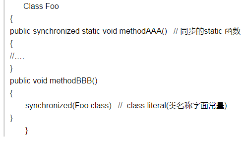 代码中的methodBBB()方法是把class literal作为锁的情况,它和同步的static函数产生的效果是一样的,取得的锁很特别,是当前调用这个方法的对象所属的类(Class,而不再是由这个Class产生的某个具体对象了)。