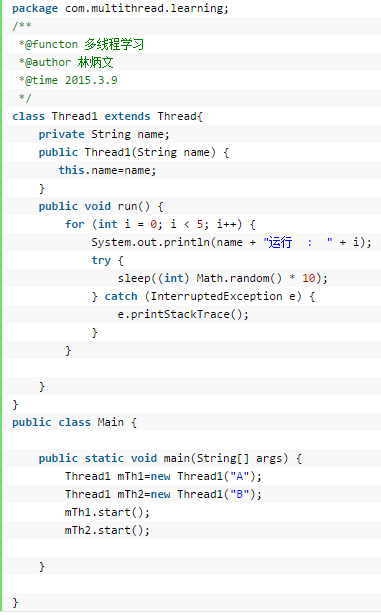 提醒一下大家:main方法其实也是一个线程。在java中所以的线程都是同时启动的,至于什么时候,哪个先执行,完全看谁先得到CPU的资源。