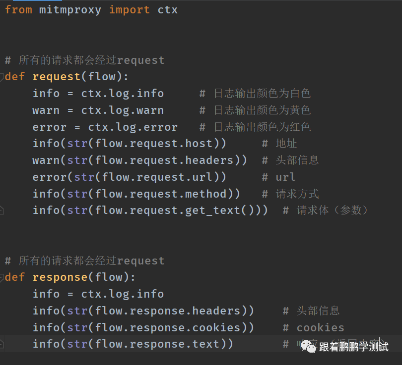 一、上个推文我们介绍了mitmdump的简单操作,下面我们开始学习,mitmdump配合python脚本的使用。第一点先讲日志输出。请看图片