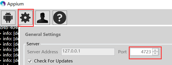也可以打开你的appium服务,如下图,发现appum服务端口号为4723