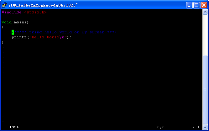 用 Vi 打开或者新建一个文件只需要输入命令 vi +[文件名]就可以了,然后就进入了Vi的界面。比如用 Vi打开一个hello.c的文件,命令如下: