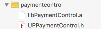 将需要的库文件拖入到自己的项目中,SDK文件所在目录upmp_iphone/paymentcontrol,包含 UPPaymentControl.h、libPaymentControl.a两个文件(老版本是三个,这点不一样)。