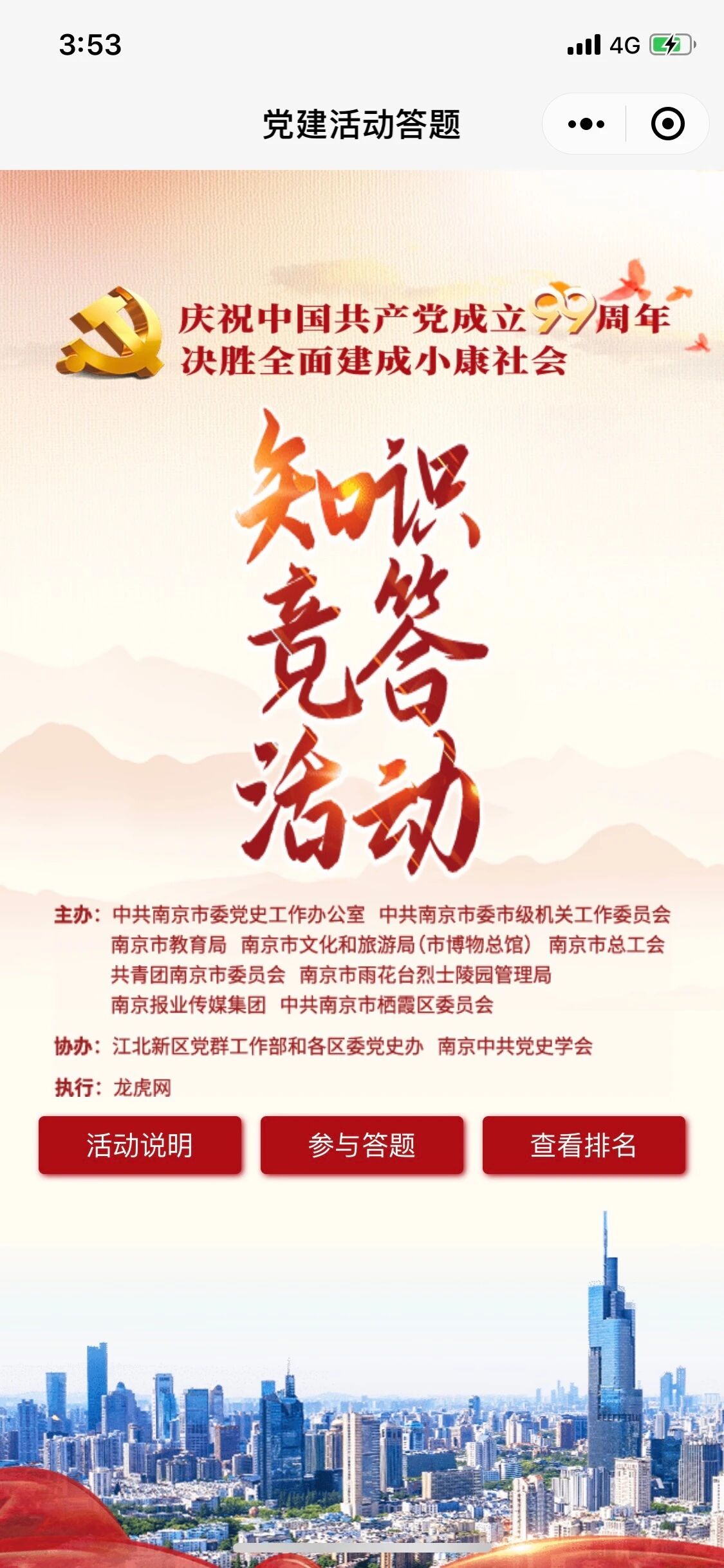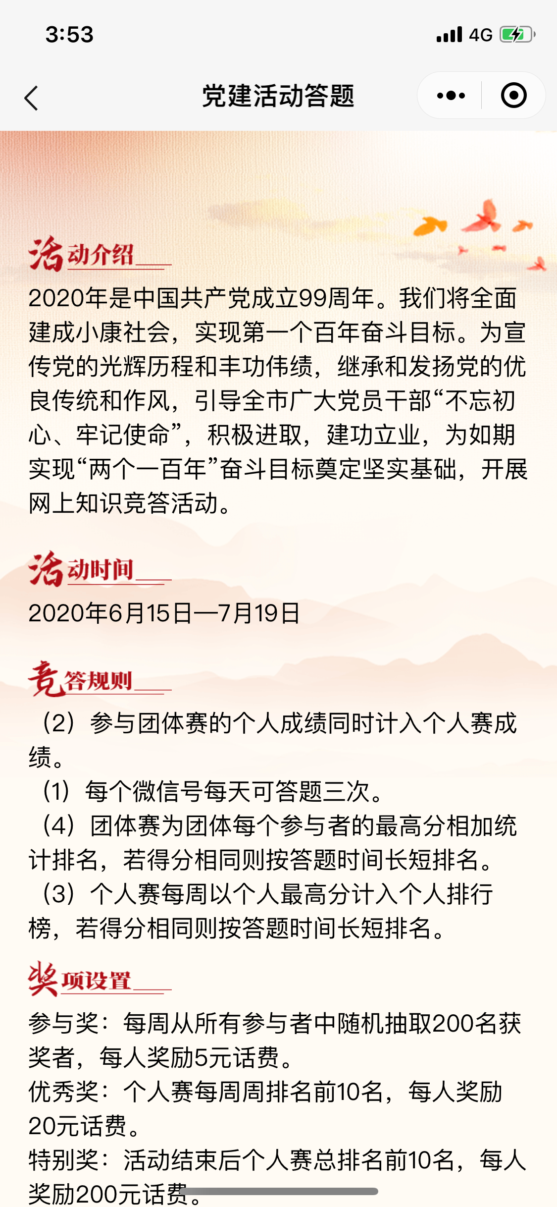 该小程序提供的功能有:注册、答题、排名、答题规则四个页面,作为一次答题活动这个功能是足够了