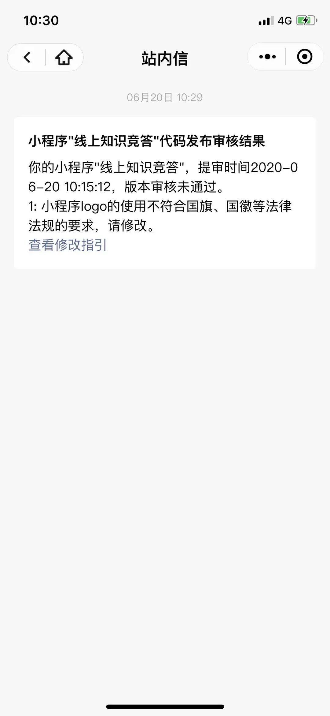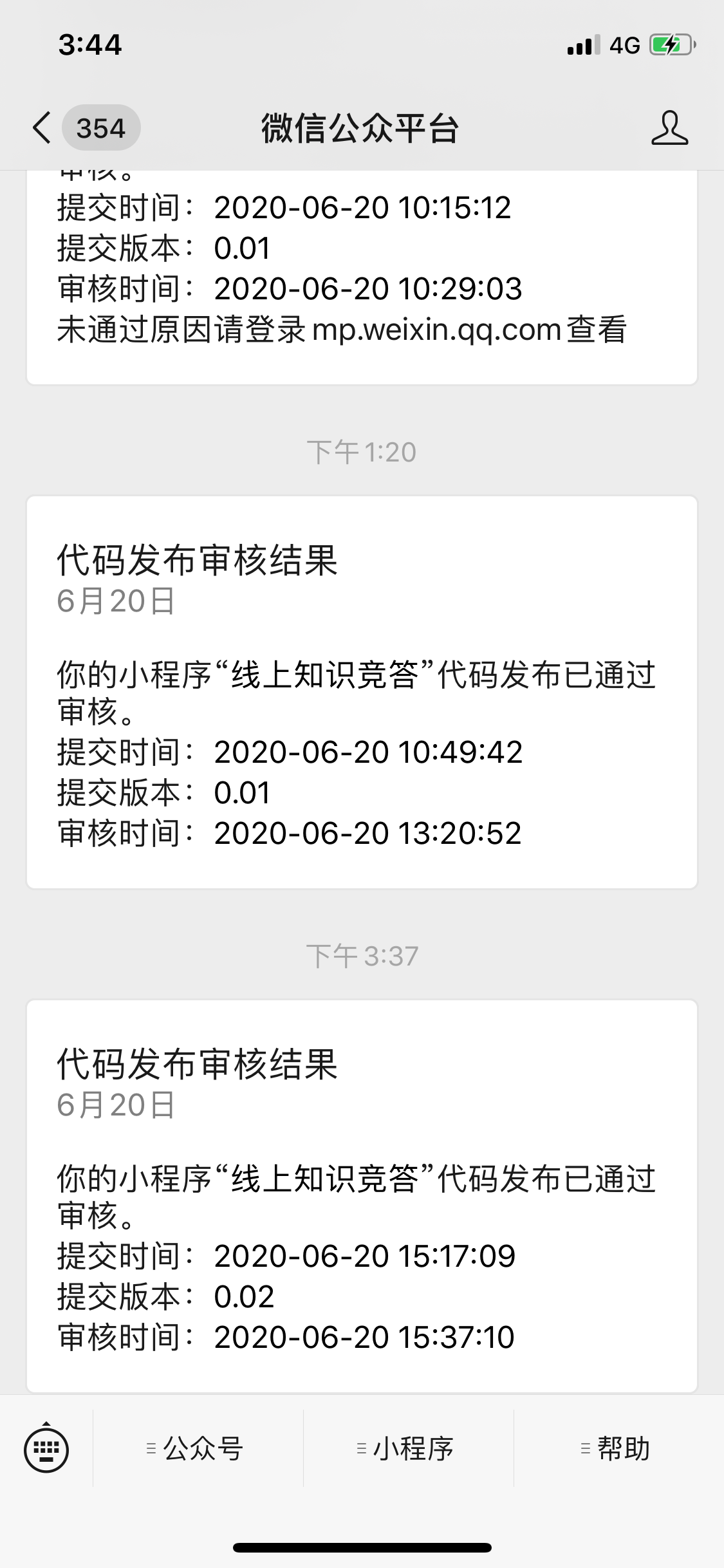 提交三次审核,第一次审核由于小程序logo是警徽的缘故被拒了,然后我修改后马上进行第二次送审
