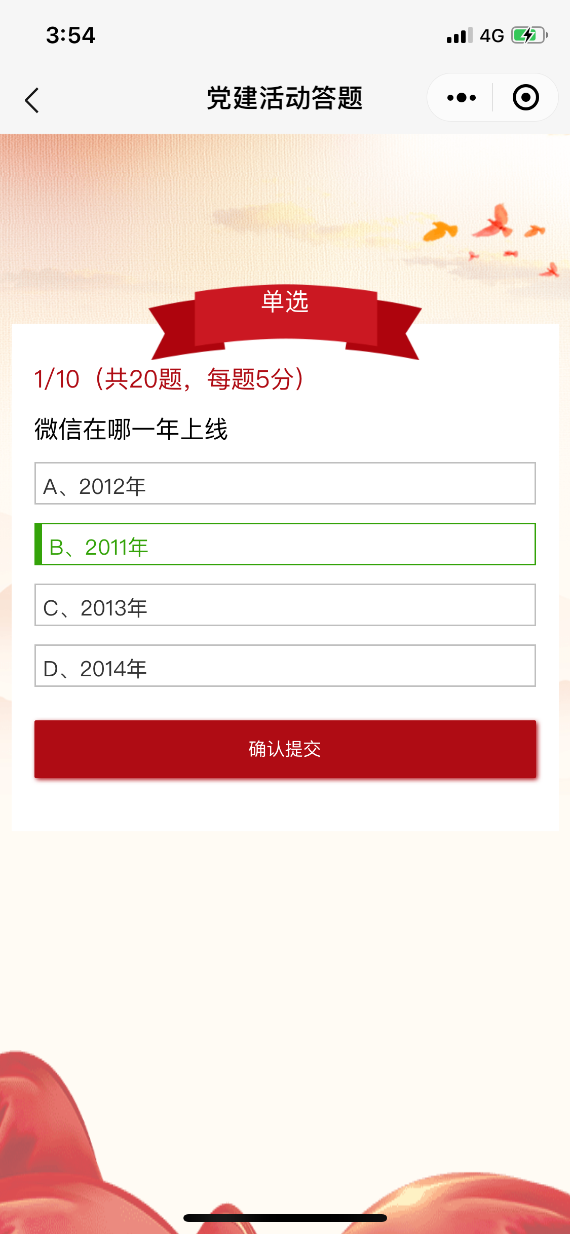从昨天(19号)晚上,7点开始我敲下第一行代码开始,截止现在(20号)下午 3点,整整20个小时,我完成了一个党建答题小程序的开发,