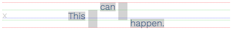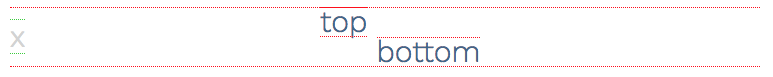 因为行盒子的基线并不可见,所以有时候不容易确定它的位置。但实际上有个简单的办法可以令其可见。只要在相关行的开头加上一个字母,比如上图中开头的“x”即可。如果这个字母没有被设置对齐,那么它默认就位于基线之上。