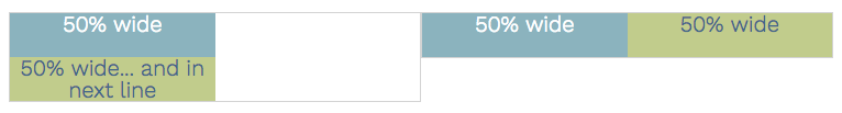 在前面列表项的例子中也可以看到这个间隙。这个间隙来自你的标记中行内元素间的空白。行内元素间的所有空白会折叠为一个。如果我们要通过 50%实现并排放两个行内元素,那这个空白就会成为障碍。因为一行放不下两个50%再加一个空白,结果就会折行(左)。要删除这个间隙,需要在HTML中通过注释删除空白(右)。