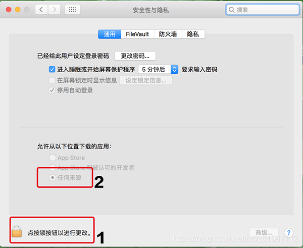 打开步骤:点击左上角苹果图标 —> 系统偏好设置 —> 安全性与隐私 —> 点击左下角黄色小锁 —> 点选任何来源