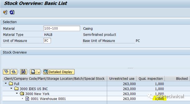 和预期的一样,根据检查规则定义,CO09不会更改,因为安全库存被定义为可用。