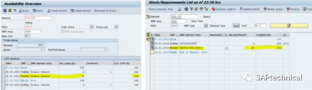 相反MD04显示,库存需求列表显示264可用, 因为根据净需求计算的定义,质量检验库存包含在可用库存中。