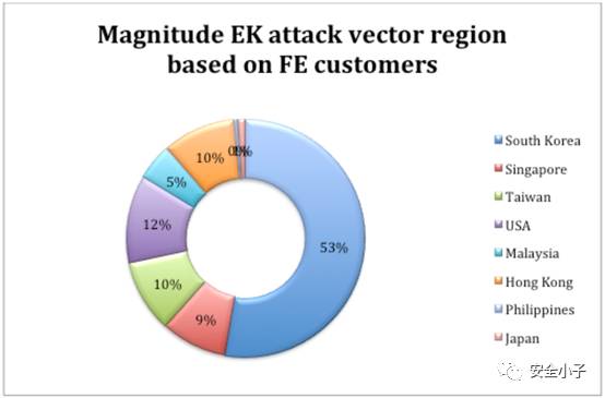 对于Magnitude EK, 这款恶意软件此前一直在亚太活动,火眼在其一篇文章中称,自2016年Magnitude EK的活动基本已经销声匿迹,但是其仍一直在特定地区活动频繁,特别是近期一直在频繁攻击APAC地区(亚太),下图是火眼的一张攻击分布图: