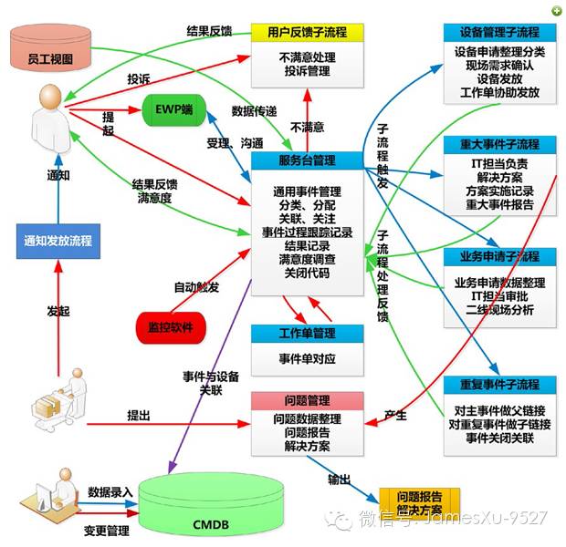 设备管理:与资产设备相关的申请、发放、故障处理等事件,一般需要二线到现场处理;