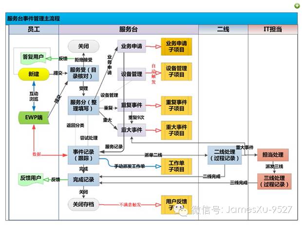 常规事件管理 (工作单管理子流程 ):常规类 IT 服务事件是广本日常处理最多的事件,包括邮件类事件,故障类事件等;