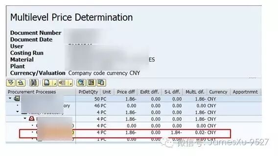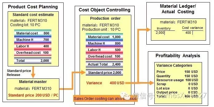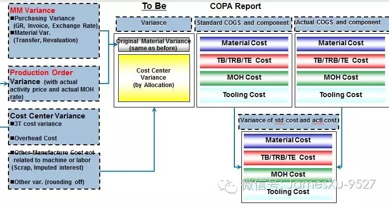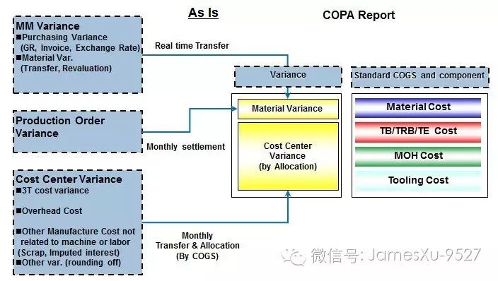 差异都进行了下一步的细化分摊到各级物料,最终在COPA报表流入value field还原实际成本
