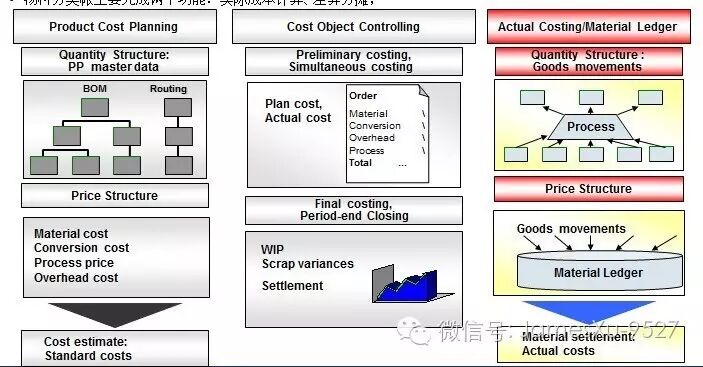 •实际成本/物料分类帐是产品成本控制模块的一个子模块,产品成本控制包括三个子模块,产品成本计划,成本对象控制,实际成本/物料分类帐;