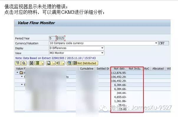 ØCKMVFM: Value Flow Monitor:用于查看物料帐不能处理的差异;ØCKM3: MaterialPrice Analysis:用于查看物料价格的计算过程及差异分摊的结果。
