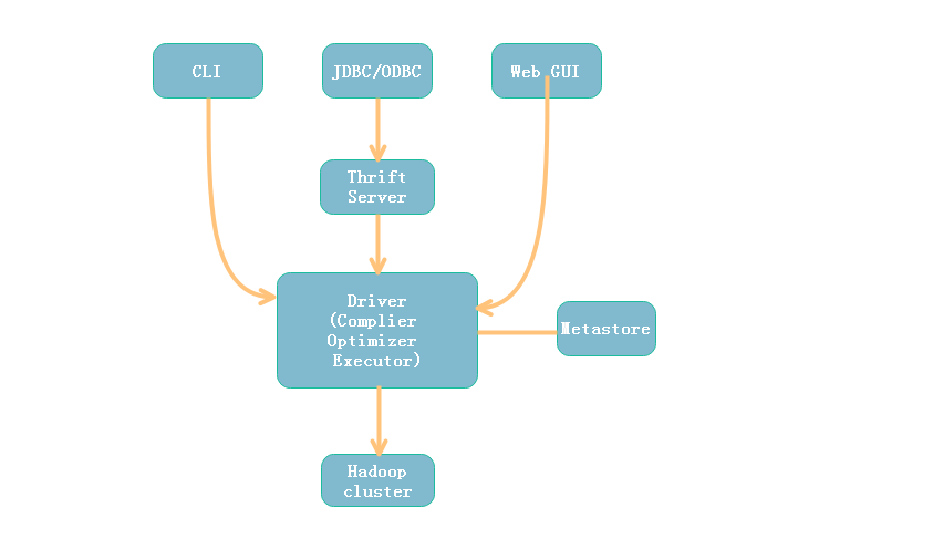 Thrift Server:Thrift 是 FaceBook 开发的一个软件框架,它用来进行可扩展且跨语言的服务的开发, 通过该服务使不同编程语言调用 Hive 的接口。