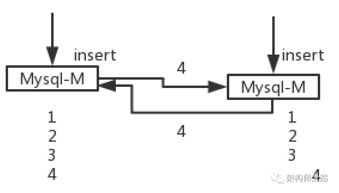 在主键4的数据同步成功之前,主库2插入了一条记录,也生成了主键为4的记录,结果导致数据不一致
