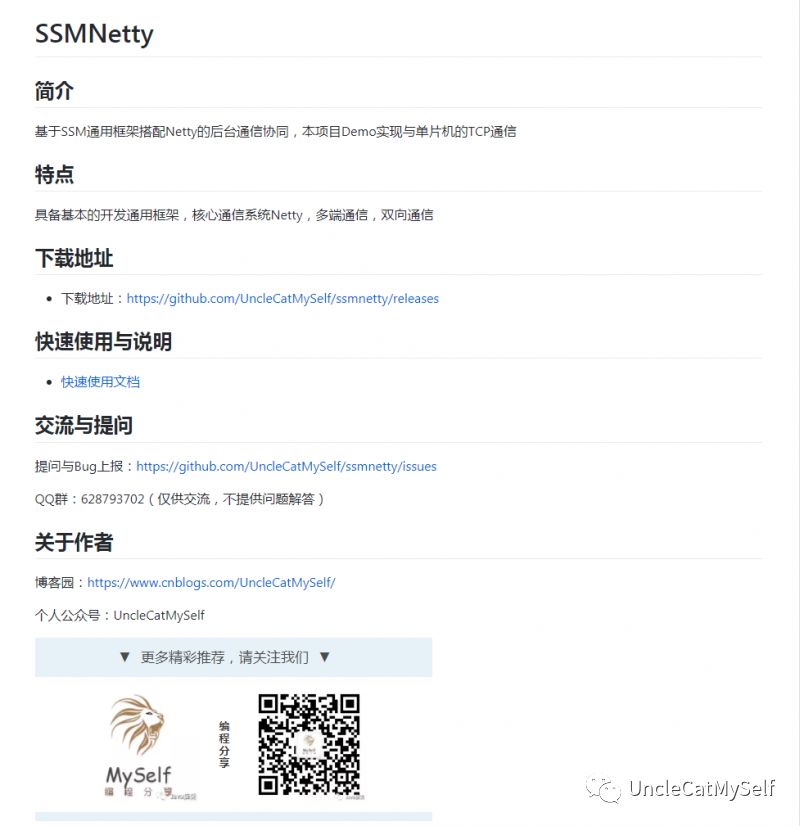 地址:https://github.com/UncleCatMySelf/ssmnetty