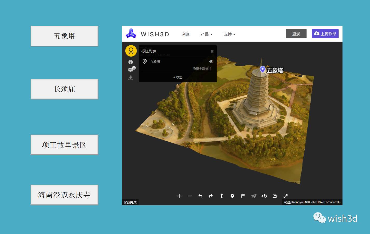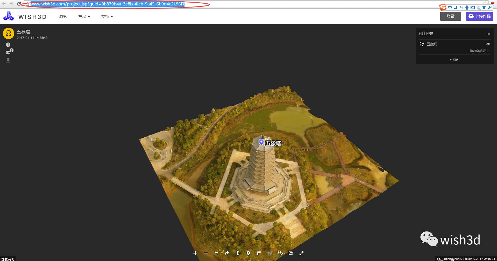 想要在web browser中看到各命令按钮所代表的三维场景,我们需要在每个命令按钮的VBA代码里加入三维场景的地址。这里我们以五象塔为例。