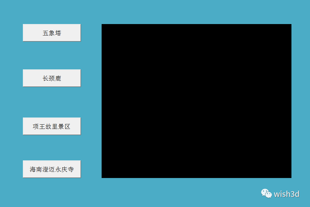 控件属性中将按钮名称修改为三维场景的名称,如下图所示: