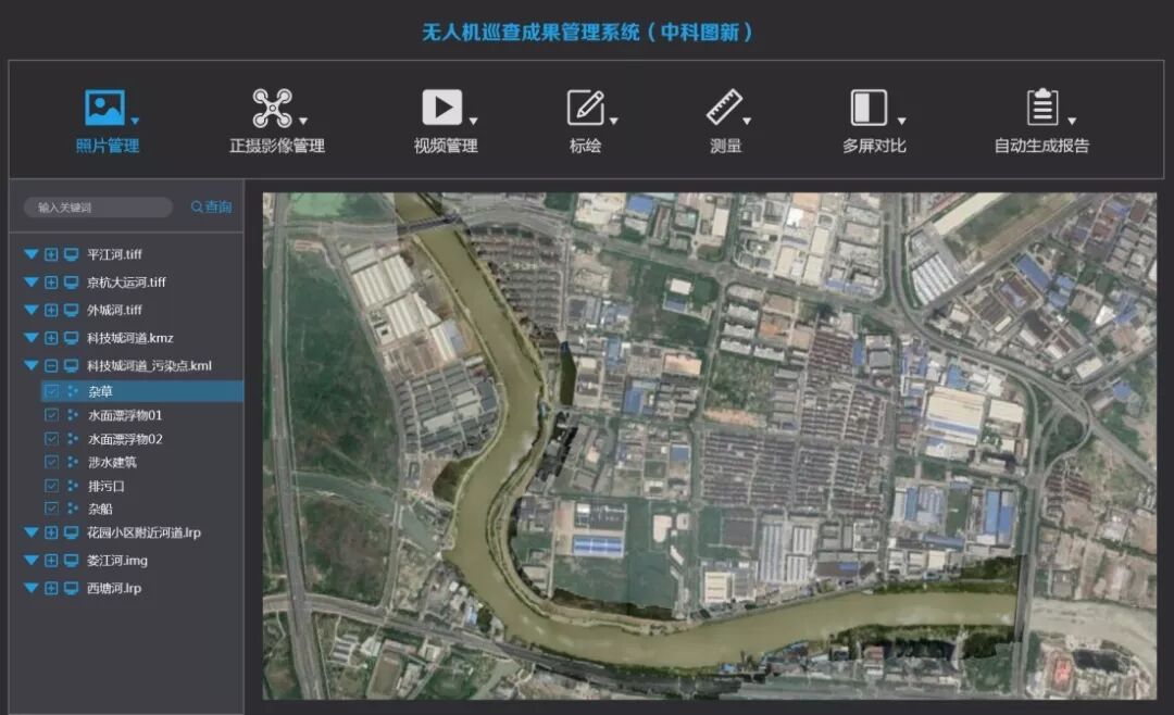 中科图新凭借在三维GIS平台上的技术优势,推出了针对无人机巡查成果的数据管理系统——巡检精灵,彻底解决企事业单位无人机巡查数据难管理难应用的问题。进行无人机巡查照片、视频、正射影像的快速检索查看,对巡查中发现的各类违法事项标注说明,可追溯历史巡查影像资料和问题台账资料。省心、方便、快速地把巡查数据管理起来。