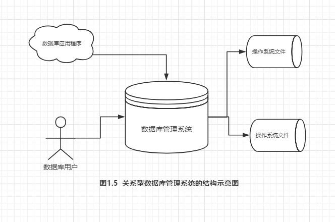 数据库管理系统是基于关系型数据库模型创建的计算机软件程序,其英文全称是Relational Database Management System,简称RDBMS。数据库管理系统是位于操作系统和用户(或者是基于数据库的应用程序)之间的一组数据库管理程序,它提供了对数据库中的数据进行统一管理和控制的功能,对归根到底,数据库中的数据是以文件的形式存放在操作系统中的,数据库管理系统提供了数据库和高级组织形成,他提供了对数据库中的数据的统一管理和控制的功能,数据库管理系统与用户的示意图如图1.5所示。