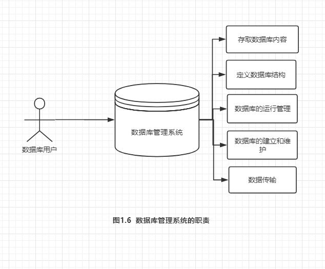 数据库管理系统负责对数据库进行全方位的管理,他包含了如图1.6所示的几项职责。