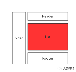 想象一下,假如仅仅因为list插入了一条数据就对整个视图diff,即使js引擎很快但这样的效率无疑也是很低的,我们更希望的是将数据拆分,每次数据改变只对一个可控的范围进行diff,而其余的部分不受影响。组件化刚好解决了这样的问题,我们可以将页面拆分为如下: