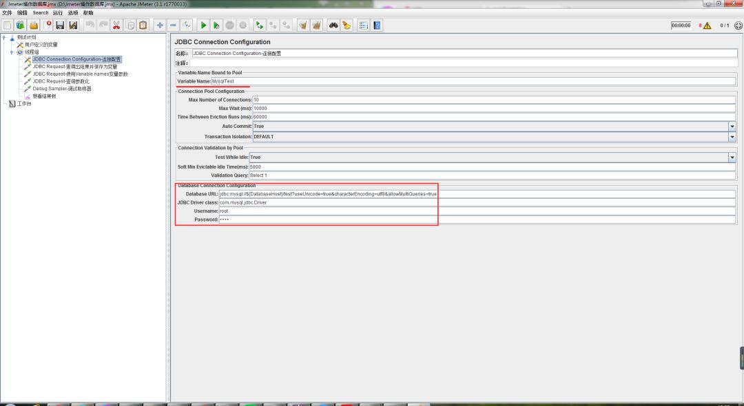 Variable Name:配置变量名,JDBC Request需要配置相同变量名才可以调用该配置