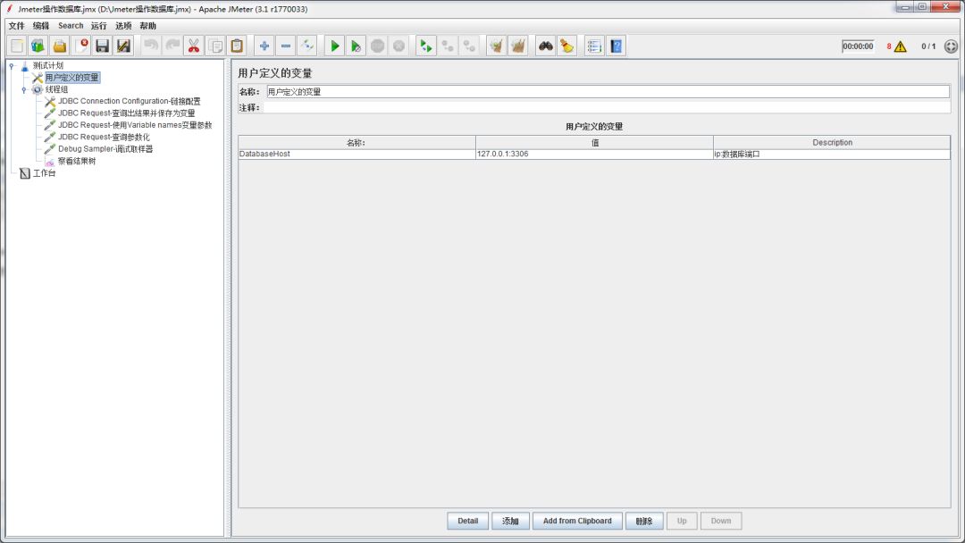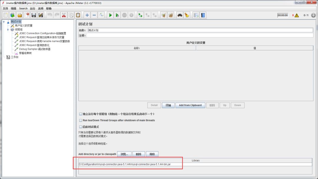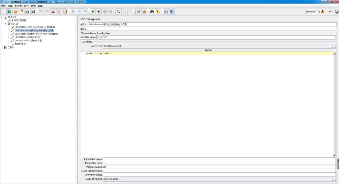 5.在线程组中添加‘sampler(取样器)-JDBC Request’