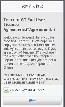 3.在安卓手机上打开GT,点击接受