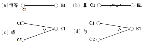 ④与:若c1和c2都是1,则E1为1;否则E1为0。