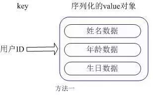 第一种方式将用户 ID 作为查找 key,把其他信息封装成一个对象以序列化的方式存储,这种方式的缺点是,增加了序列化/反序列化的开销,并且在需要修改其中一项信息时,需要把整个对象取回,并且修改操作需要对并发进行保护,引入CAS等复杂问题。