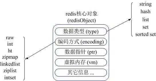首先Redis内部使用一个redisObject对象来表示所有的key和value,redisObject最主要的信息如上图所示:type代表一个value对象具体是何种数据类型,encoding是不同数据类型在redis内部的存储方式,比如:type=string代表value存储的是一个普通字符串,那么对应的encoding可以是raw或者是int,如果是int则代表实际redis内部是按数值型类存储和表示这个字符串的,当然前提是这个字符串本身可以用数值表示,比如:"123" "456"这样的字符串。