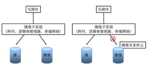 这种快照方式比较简单,先创建一个原始卷的镜像卷,每次写磁盘的时候,都会往原始卷和快照卷同时写入内容,当启动快照时,则镜像卷能快速脱离,生成一个快照卷。