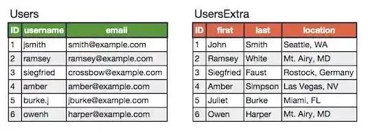 实际情况中往往会是垂直拆分和水平拆分的结合,即将 Users_A_M 和 Users_N_Z 再拆成 Users 和 UserExtras,这样一共四张表