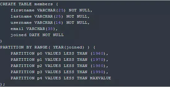 RANGE 分区:基于属于一个给定连续区间的列值,把多行分配给分区