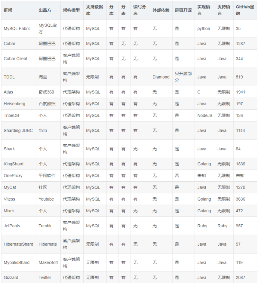 由于水平拆分牵涉的逻辑比较复杂,当前也有了不少比较成熟的解决方案。这些方案分为两大类: