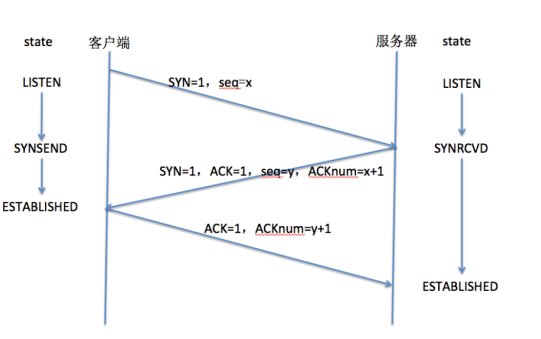 第三次握手(ACK=1,ACKnum=y+1):