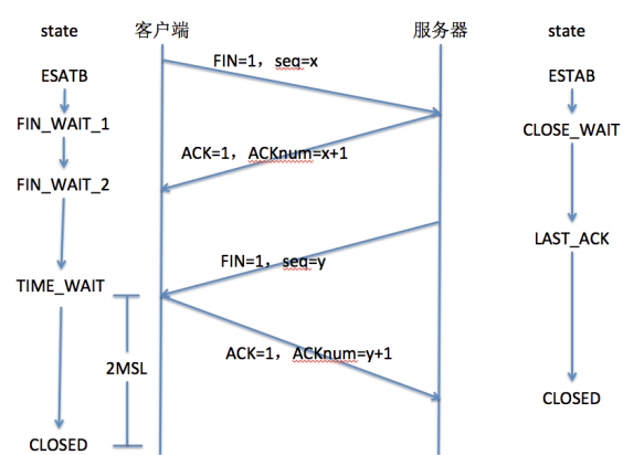 发送完毕后,服务器端进入LAST_ACK状态,等待来自客户端的最后一个ACK