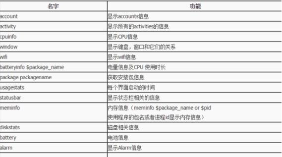 adb shell dumpsys: