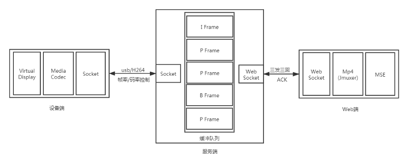 Web端最常见的直播方案是rtmp/hls/flvjs等。但是这些方案最低都有1-3s的延迟。对于一般直播平台没有影响,但是对于有实时交互场景的云控平台,要求达到毫秒级延迟。所以,最终决定采用H264裸流通过Socket传输的方案,设备端编码H264视频流直接传输到Web端进行播放。