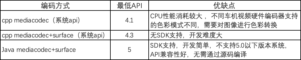 图像画面的获取直接采用的是Android的Virtual Display。编码方式有多种实现方法: