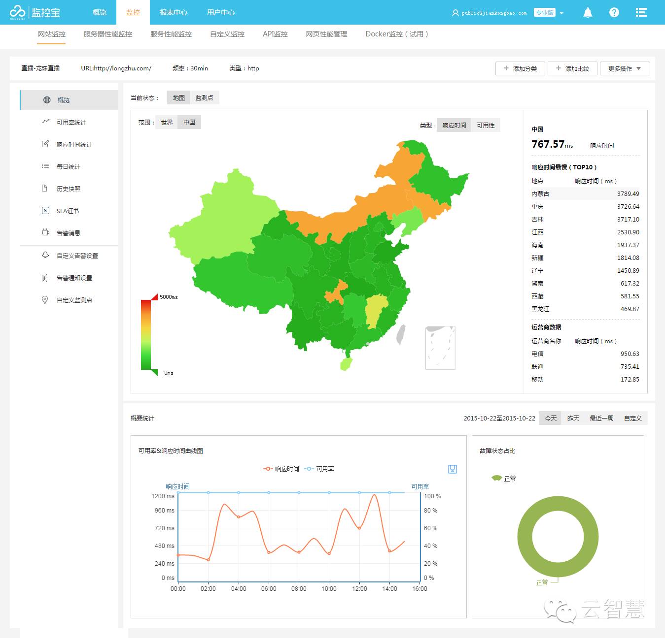 监控宝是云智慧为用户提供IT性能监控(IT Performance Monitoring)的SaaS产品,包含网站监控、服务器监控、中间件监控、数据库监控、应用监控、API监控和页面性能监控等功能。包含免费版、畅享版和企业版,目前用户约40万,监控宝app也是国内唯一提供移动监控服务的产品。