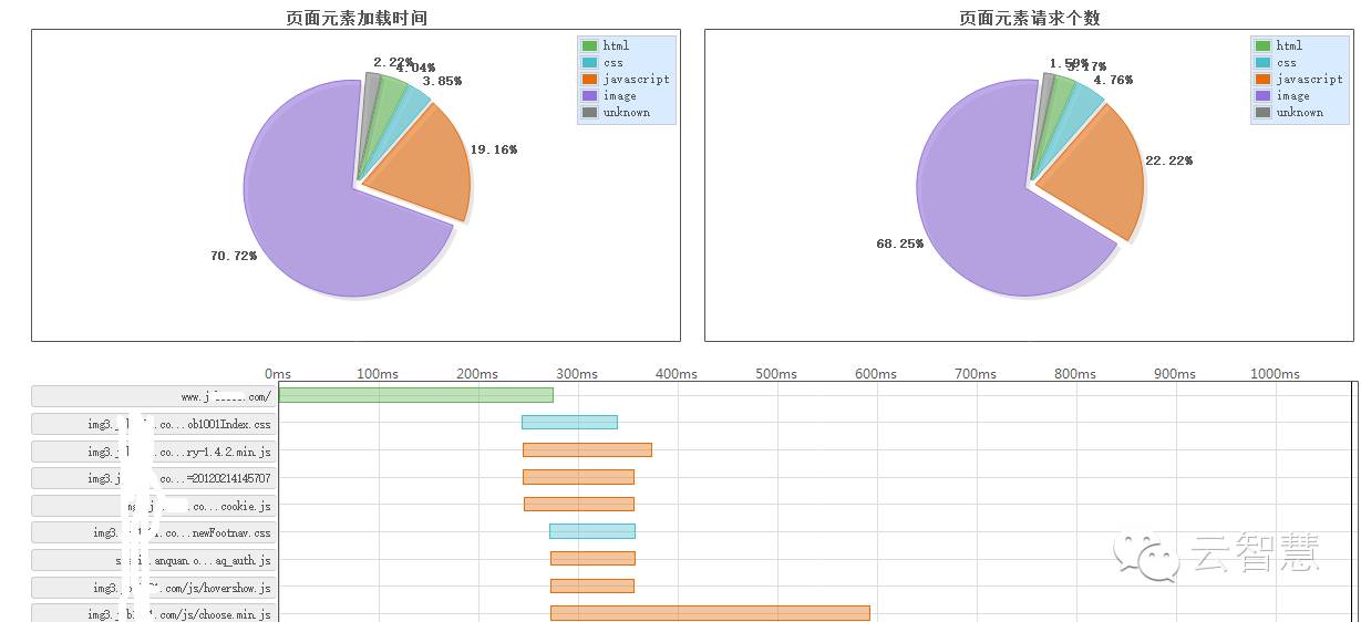 6、 监控宝提供页面性能管理,基于国际标准制定页面性能指数,识别加载元素的状态及正确性,对全网全用户加载响应时间分析,同时准确定位问题元素及优化建议。