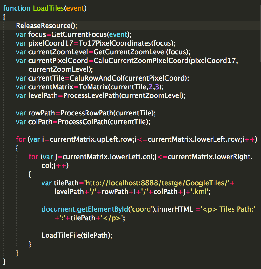 下面我們具體看一看瓦片加載過程,請原諒我無法公佈完整的源代碼,在此我只公佈一部分比較核心和能體現加載過程算法的源碼: