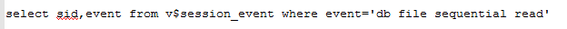 在V$SESSION_WAIT这个视图里面,这个等待事件有三个参数P1、P2、P3,其中P1代表等待I/O读取请求的文件的ABSOLUTE文件号,P2代表等待I/O读取请求的第一个数据BLOCK地址,P3代表总共有多少个连续的BLOCK被请求读取。
