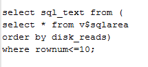 方法一:从statpack的报告中的"SQL ordered by Reads"部分或者从V$SQL视图中找出读取物理磁盘I/O最多的几个SQL语句,优化这些SQL语句以减少对I/O的读取需求。
