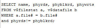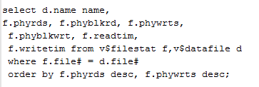 使用如下的查询语句可以得到各个数据文件的I/O分布:
